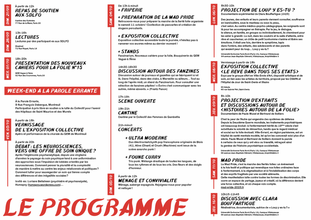 agenda, Évènement SEMAINES DE LA FOLIE ORDINAIRE – PARIS 2025 26 septembre 2025 collectif39 Affiche et programme :